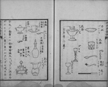 In response, the Kyōbushō (Ministry of Religious Instruction) issued three prescriptions in 1872 insisting on “Obedience to the Emperor and his Will should be inculcated.” Several guides on Western cooking were released following these prescriptions emphasising, in their prefaces, the importance of following the Imperial will. They explained how to eat the new western food, including guides to the new western utensils: